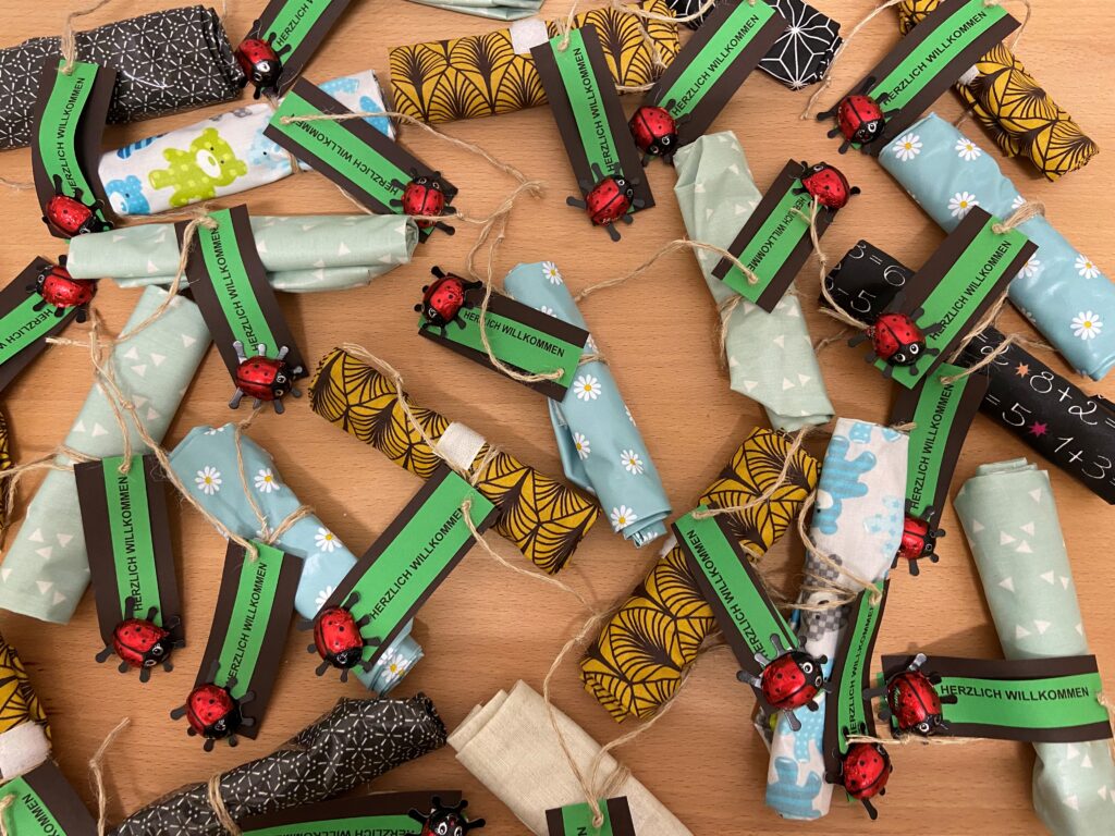 Die Sechstklässler haben für ihre Patenkinder der ersten Klasse Znünibeutel als Willkommensgruss genäht.
