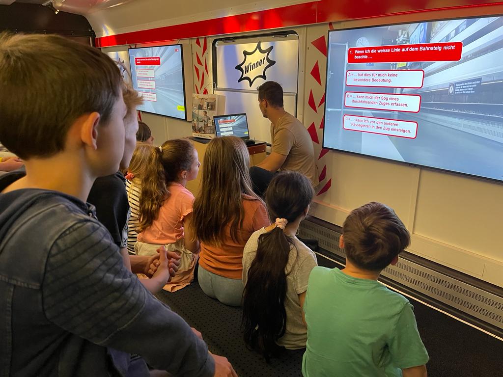 Eine unserer beiden 3. Primarklassen besucht das rollende Klassenzimmer, das in diesem Frühjahr im Hauptbahnhof St. Gallen stationiert ist. Unter dem Motto «Verantwortung» werden mit den Schülerinnen und Schülern in einer unkonventionellen und praxisnahen Lernumgebung Inhalte rund um die Themen Sicherheit, Mobilität, Energie sowie Berufswahl erarbeitet. Die Förderung der Kompetenzen bei Kindern und Jugendlichen zu diesen Themen ist ein wichtiges Anliegen der SBB. Das Ziel ist es zudem, die jungen Besucherinnen und Besucher mit Beispielen aus der Praxis für faires und verantwortungsvolles Verhalten im öffentlichen Verkehr zu motivieren.